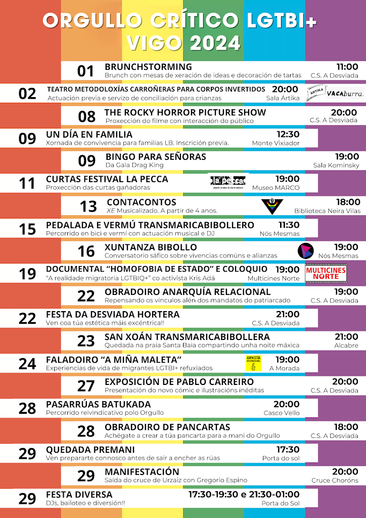 O vindeiro sábado 1 e ata o 29 de xuño disfrutaremos en Vigo dunha programación polo Orgullo lgtbi social, diversa e reivindicativo!